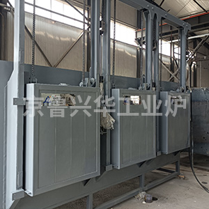 爐殼由角鋼與鋼板焊接而成。爐膛默認采用本公司自行研發(fā)的“新型不定型澆注組合爐襯”制作,也可根據(jù)用戶需求采用耐火磚砌筑或使用全纖維爐襯。爐膛與爐殼之間填充保溫材料。由鐵鉻鋁絲繞成螺旋形的加熱元件分別置放在爐膛兩側和爐底擱磚上,用耐熱合金鑄成的爐底板脂肪在爐底支撐磚上,用來放置被加熱的工件。爐門中部有一觀察孔,可由此觀察爐內加熱情況。爐門通過手搖鏈輪機構進行升降,爐門左側的平衡重錘筒內放置鑄鐵塊,用來平衡爐門的重量。熱電偶孔設置在爐頂中部,熱電偶由此插入爐內,并通過電爐控制柜進行電爐的溫度控制。